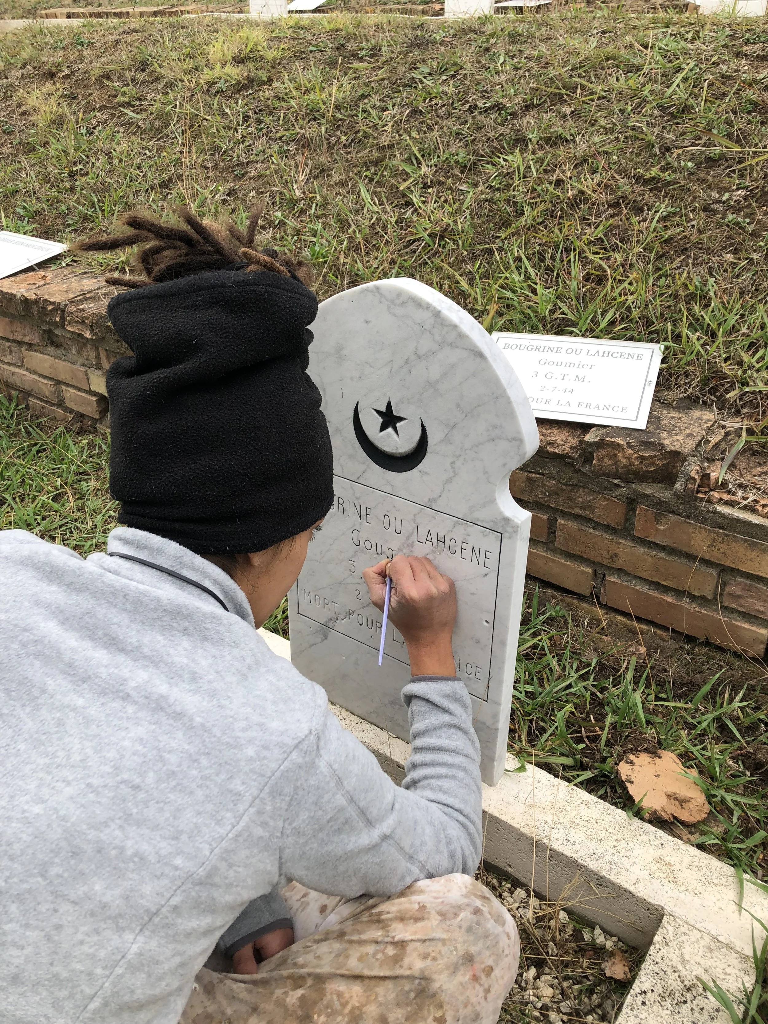 Les cimetières militaires et lieux de mémoire français en Italie témoignent des conflits armés qui se sont déroulés ici, des guerres napoléoniennes à la Seconde Guerre mondiale. Le ministère français des Armées entretient ainsi les grands cimetières militaires présents dans tout le pays. Chaque année, d’importants travaux d’entretien sont conduits pour l’entretien du patrimoine arboré et funéraire dans un double objectif de préservation mémorielle et patrimoniale. Ainsi, les stèles funéraires en marbre de Carrare, sont restaurées par simple brossage manuel, élimination mécanique des dépôts incohérents et application de biocide.