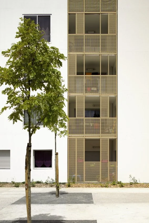 Cette résidence de 36 logements incarne l’image du quartier de la Grâce de Dieu à Caen en pleine rénovation urbaine et désenclavement. Une attention particulière a été portée sur la hiérarchisation des espaces et notamment sur le passage de l’espace public à l’espace privé. Les balcons sont des alcôves extérieures qui prolongent les séjours. La forme de « L » renversé s’ouvre sur un cœur d’îlot agréable, partagé et généreux. Les espaces verts se déclinent en barrière végétale contre le bruit avec des espaces plantés, des jardins potagers ou encore des aires de jeux.